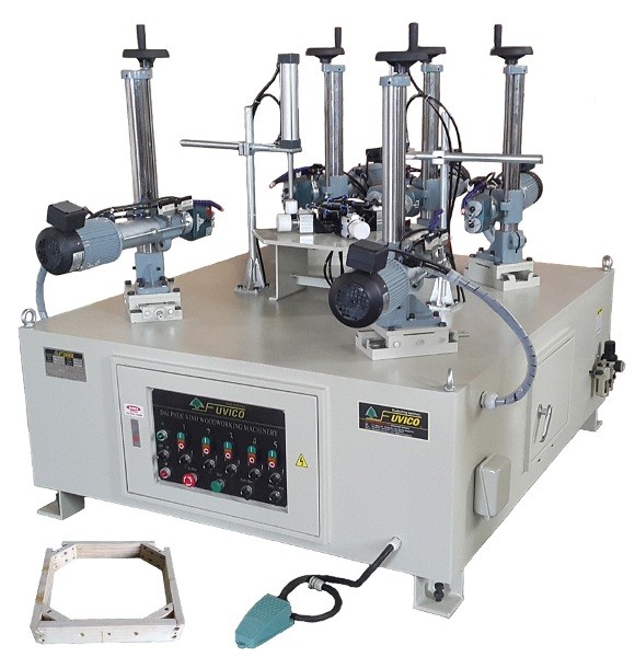 Máy khoan khung mê ghế tự động 5 đầu khoan với 5 vị trí chính, máy được sản xuất bởi hãng Fuvico. Toàn bộ hệ thống Motor, cụm khoan, linh kiện điện, khí nén của Đài Loan, Hàn Quốc, Nhật